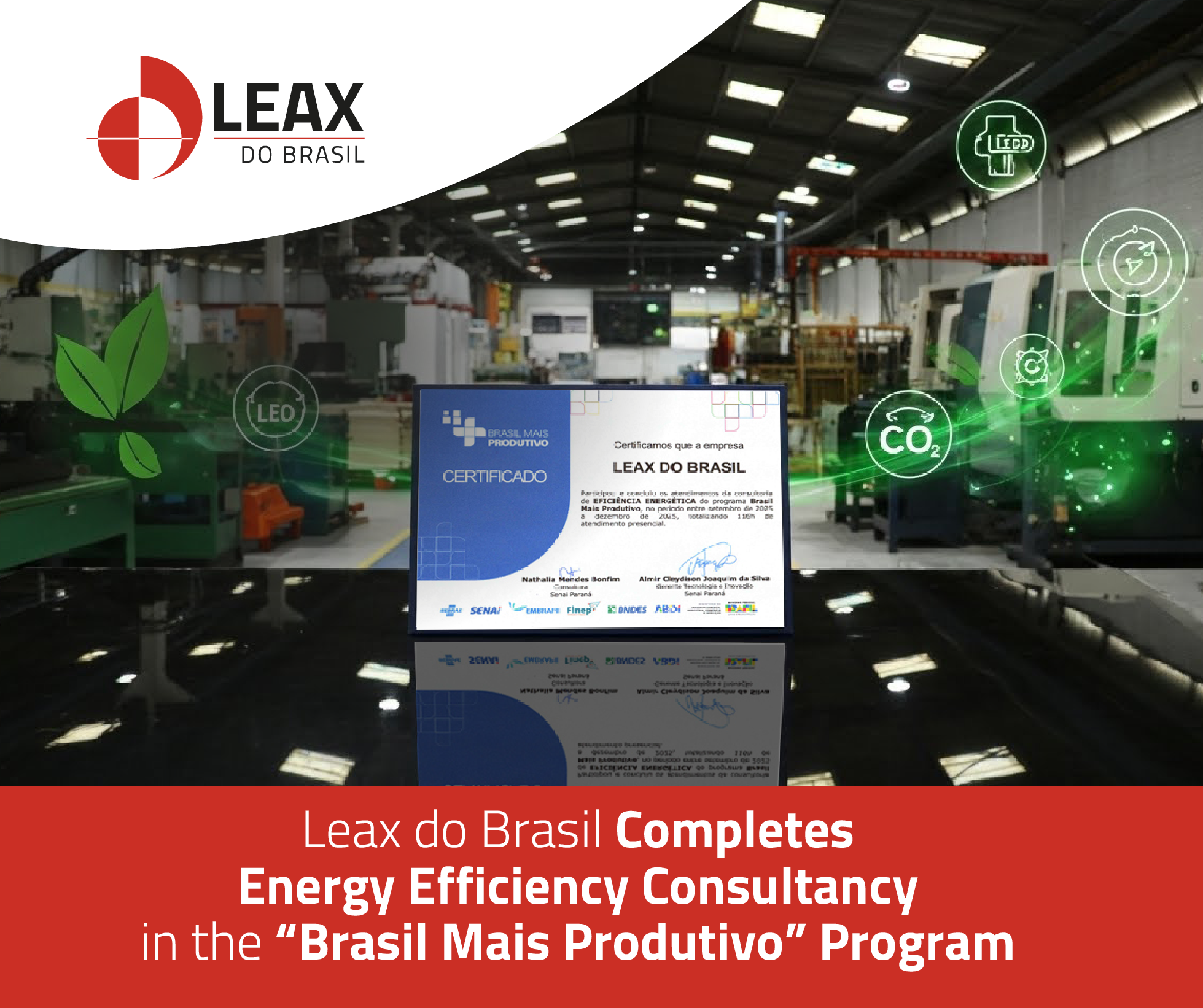 Leax do Brasil, in partnership with Senai, successfully completed a specialized energy efficiency consultancy within the Brasil Mais Produtivo (B+P) Program, a free federal government initiative launched in 2023 to support micro, small, and medium-sized industrial companies in process optimization and competitiveness enhancement. The certificate received confirms Leax’s active participation between September and December 2025, totaling 116 hours of in-person assistance. This period involved a comprehensive diagnosis of energy consumption, identification of waste, and implementation of practical measures that generated cost savings, reduced greenhouse gas emissions, and greater sustainable productivity.